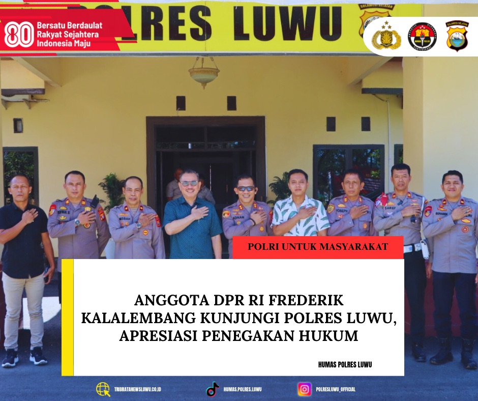 Tribratanewsluwu.co.id | LUWU — Anggota DPR RI Komisi I, Irjen. Pol. (Purn.) Drs. Frederik Kalalembang, melakukan kunjungan kerja ke Polres Luwu, Selasa (12/8/2025).