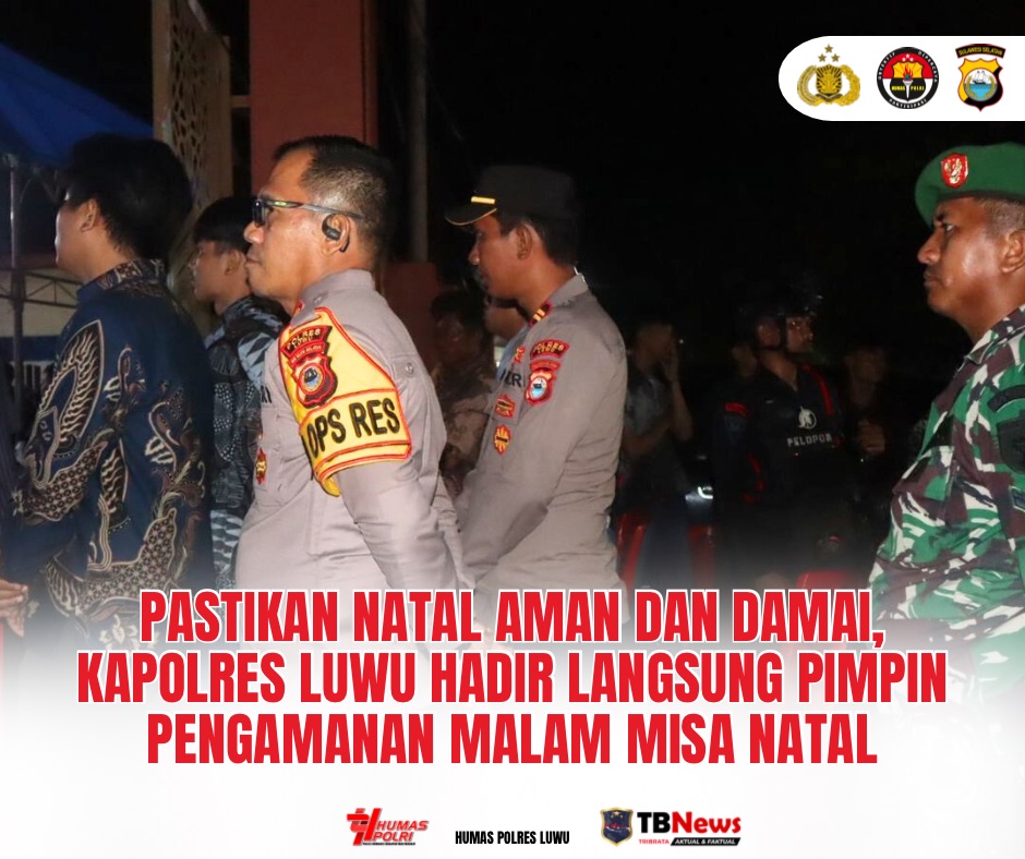 Tribratanewsluwu.co.id | LUWU — Kapolres Luwu, AKBP Adnan Pandibu, S.H., S.I.K., memimpin langsung pengamanan pelaksanaan Malam Misa Natal yang berlangsung di Gereja Katolik St. Petrus, Padang Sappa, Kecamatan Ponrang, Kabupaten Luwu, Rabu malam (24/12/2025).