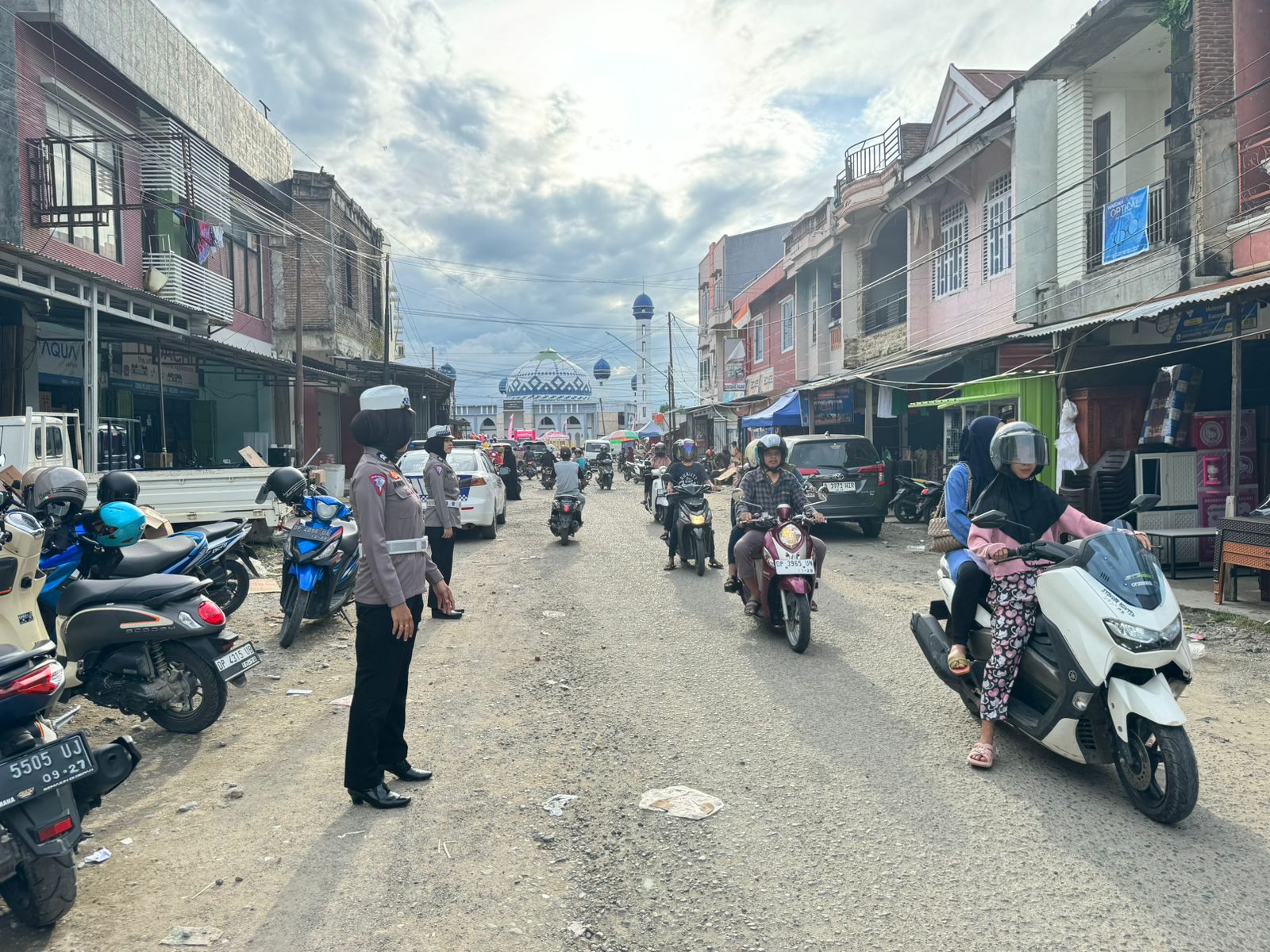 Tribratanewsluwu.co.id LUWU – Jelang buka puasa personil Polisi Wanita (Polwan) Satlantas Polres Luwu, laksanakan pengaturan lalu lintas dan pengamanan pusat perbelanjaan masyarakat di pusat keramaian Pasar Lama Kota Belopa, Selasa (2/4/24).
