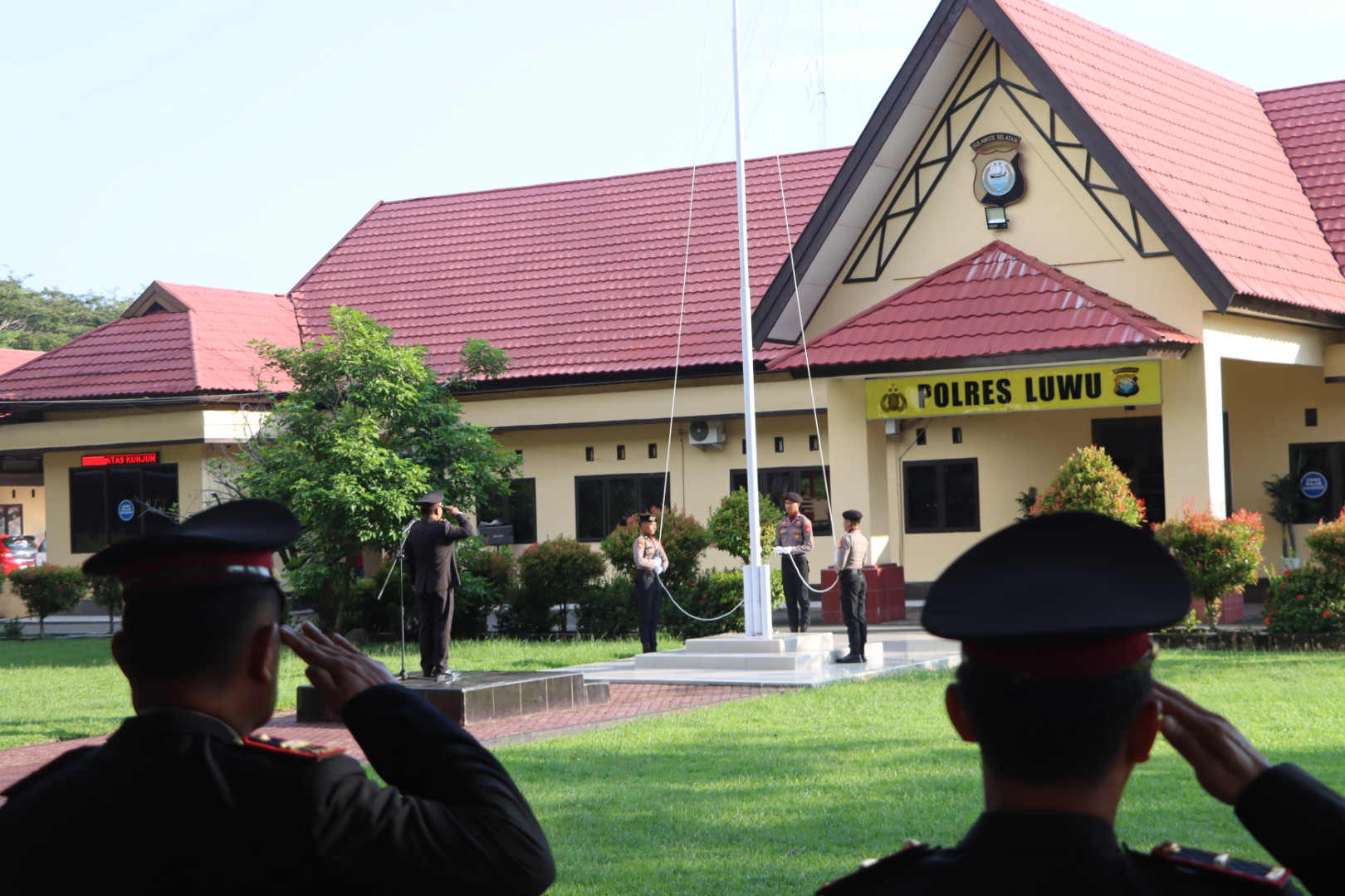 Upacara peringatan hari lahir pancasila yang dilaksanakan di Polres Luwu, dipimpin langsung oleh Wakapolres Luwu Kompol La Makkanenneng, S.E., serta diikuti oleh seluruh personil Polres Luwu baik jajaran Perwira dan Bintara.