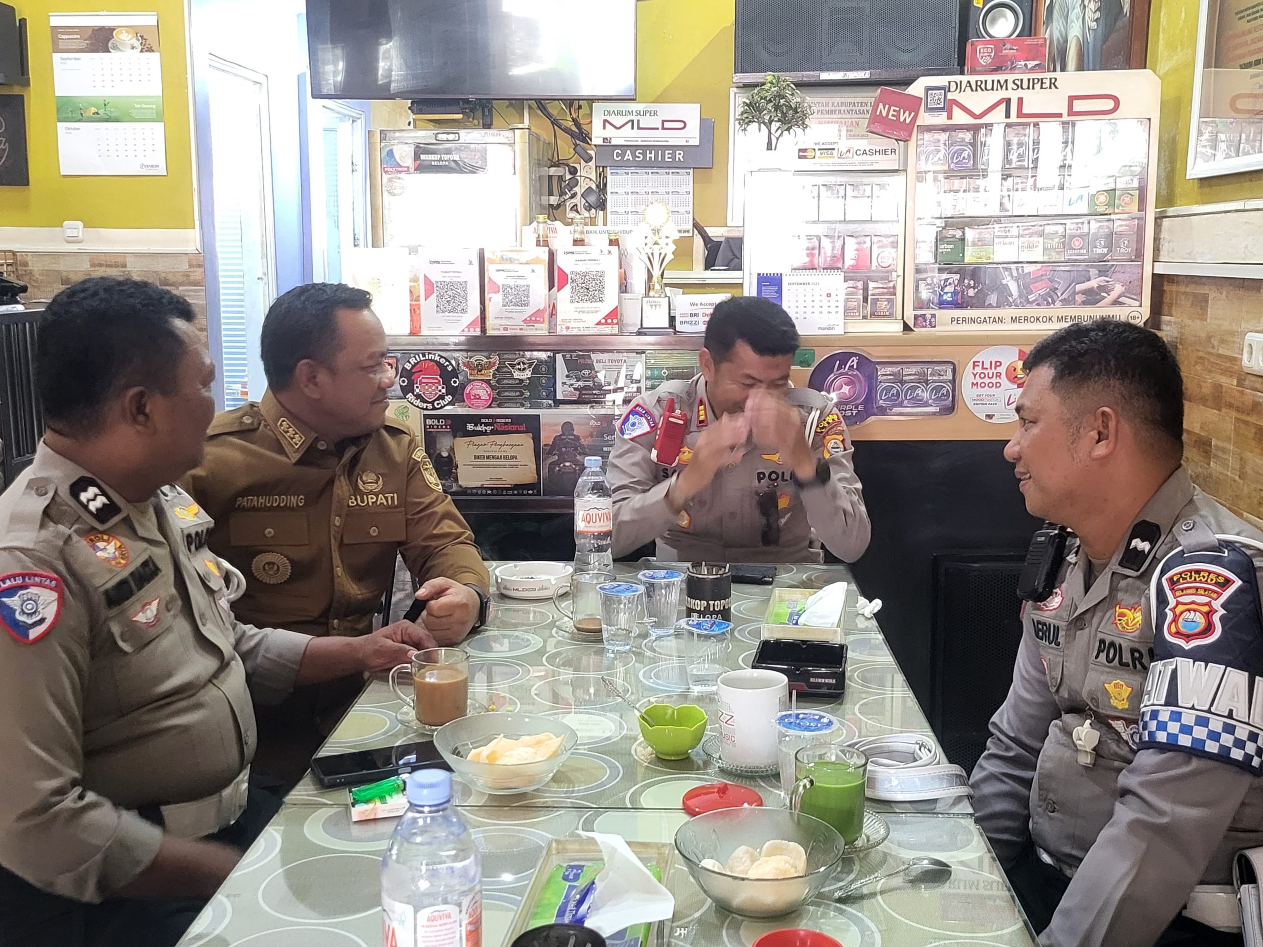 Tribratanewsluwu.co.id | Luwu – Upaya Satuan Lalu Lintas (Satlantas) Polres Luwu dalam menjaga keamanan, keselamatan, ketertiban, dan kelancaran lalu lintas (Kamseltibcarlantas) mendapat apresiasi langsung dari Bupati Luwu, H. Patahudding, S.Ag. Hal ini disampaikan dalam kegiatan coffee morningbersama jajaran Satlantas Polres Luwu di Warkop Topoka, Senin (29/9/2025).