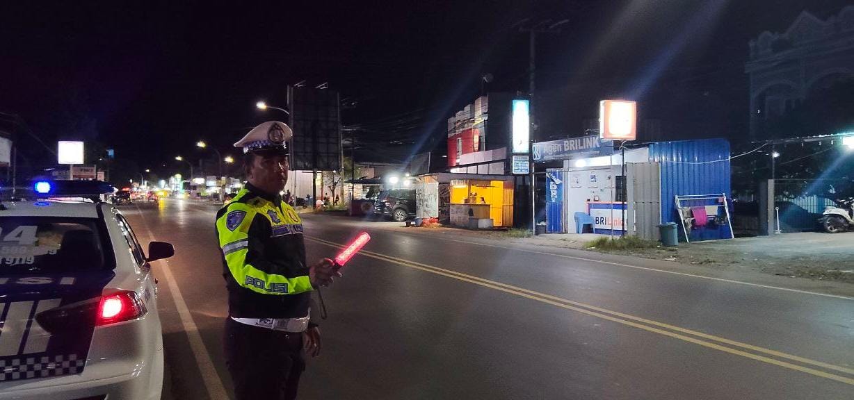 Dalam patroli tersebut, petugas terlihat melakukan penjagaan dan pengaturan arus kendaraan dengan perlengkapan pengatur lalu lintas. Selain memastikan pengendara mematuhi aturan, kehadiran polisi juga memberikan rasa aman bagi masyarakat yang masih beraktivitas di malam hari.