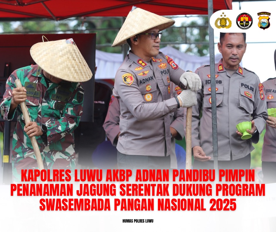 Kegiatan tersebut dipimpin langsung oleh Kapolres Luwu AKBP Adnan Pandibu, S.H., S.I.K., bersama jajaran Forkopimda Luwu dan unsur terkait. Penanaman jagung ini merupakan bagian dari program nasional penanaman jagung satu juta hektare yang digagas untuk mendukung swasembada pangan dan memperkuat ketahanan pangan masyarakat.