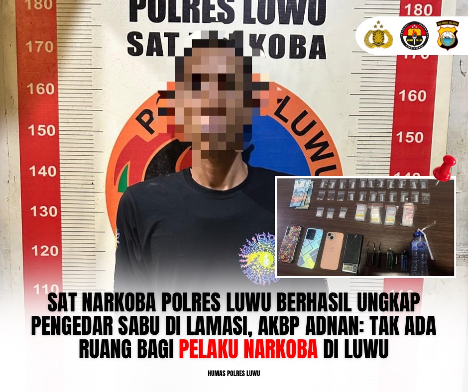 “Penangkapan ini menjadi bukti keseriusan Polres Luwu dalam memberantas narkoba sampai ke akar-akarnya. Kami mengajak seluruh elemen masyarakat untuk bersama menjaga lingkungan dari bahaya narkotika,” tegas Kapolres.