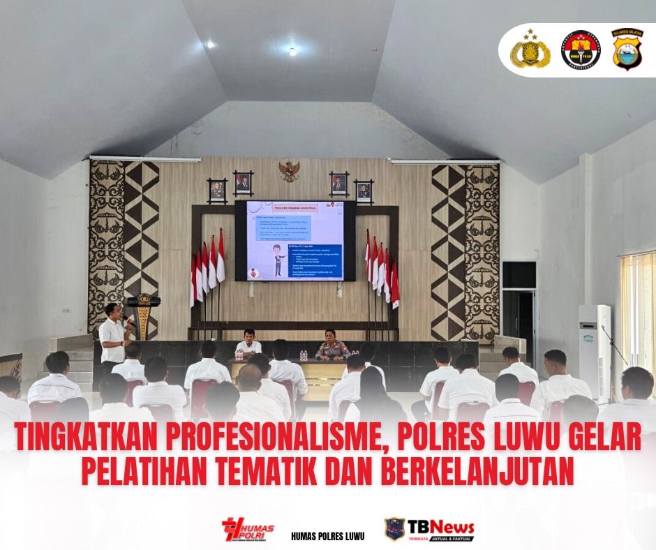 Tribratanewsliwu.co.id. | Luwu — Dalam upaya meningkatkan kemampuan dan profesionalisme personel, Polres Luwu menggelar kegiatan Latihan Kemampuan (Latkapuan) Pelatihan Secara Tematik dan Berkelanjutan, Senin (3/11/2025) di Aula Tobakketongangnge Polres Luwu.