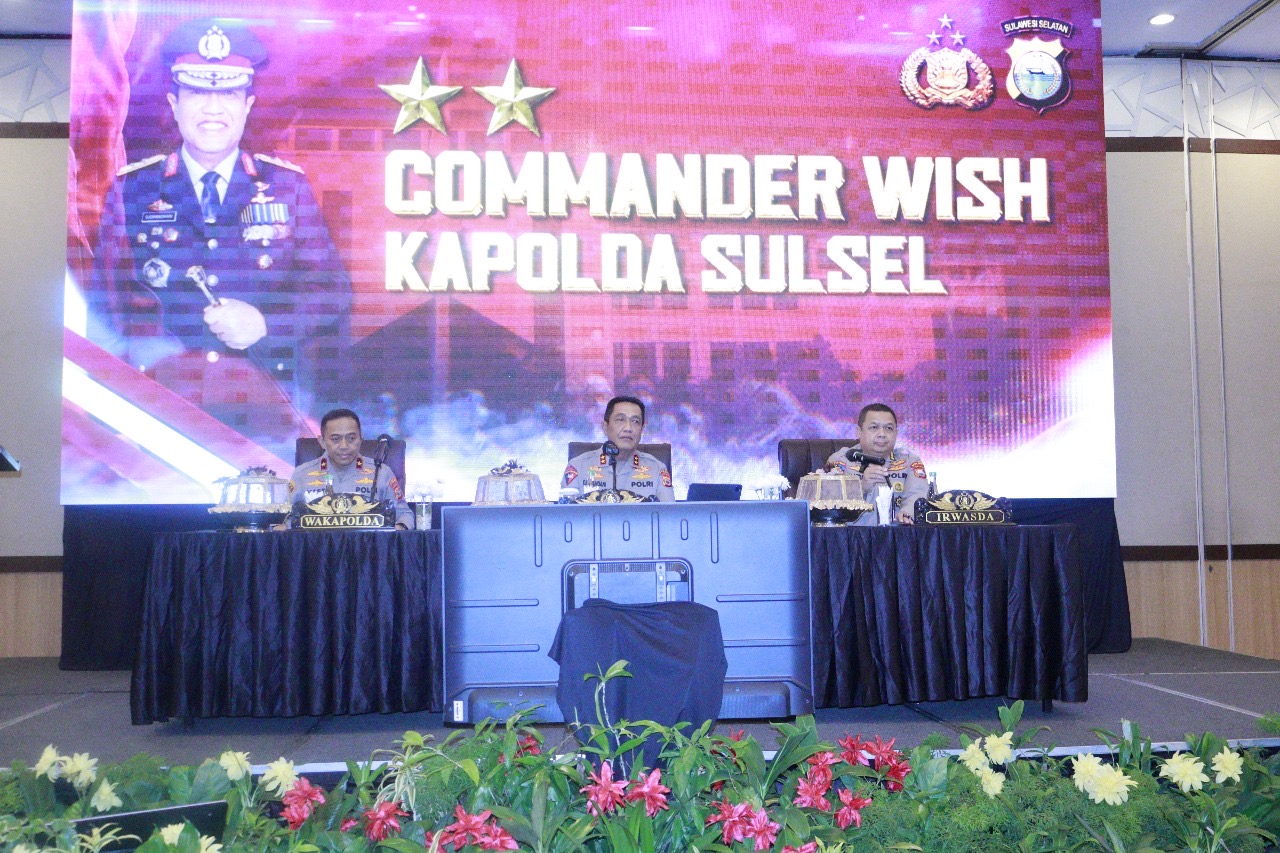Makassar – Sulsel, Kapolda Sulawesi Selatan Irjen Pol. Djuhandhani Rahardjo Puro, S.H., M.H., menyampaikan Commander Wish kepada seluruh personel Polda Sulsel bertempat di Hotel Harper Perintis Kemerdekaan, Selasa (04/11/2025).