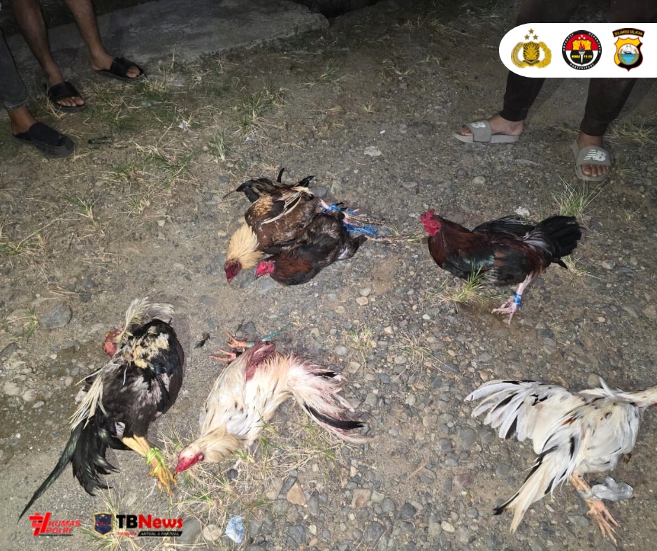 “Petugas mengamankan tiga ekor ayam aduan yang masih hidup, satu ekor bangkai ayam aduan, serta satu bilah pisau taji yang masih melekat di kaki ayam aduan,” jelas Iptu Muhammad Ibnu Robbani.