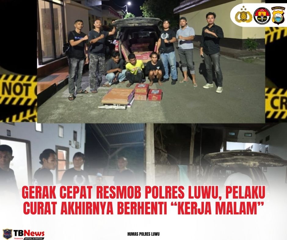 TRIBRATANEWSLUWU.CO.ID | LUWU – Satuan Reserse Kriminal (Satreskrim) Polres Luwu kembali menunjukkan komitmennya dalam memberantas tindak kriminalitas. Tim Resmob Polres Luwu bersama Satreskrim Polsek Belopa berhasil mengungkap dan mengamankan tiga terduga pelaku tindak pidana pencurian dengan pemberatan (curat) yang terjadi di wilayah Kecamatan Belopa dan Belopa Utara, Kabupaten Luwu.