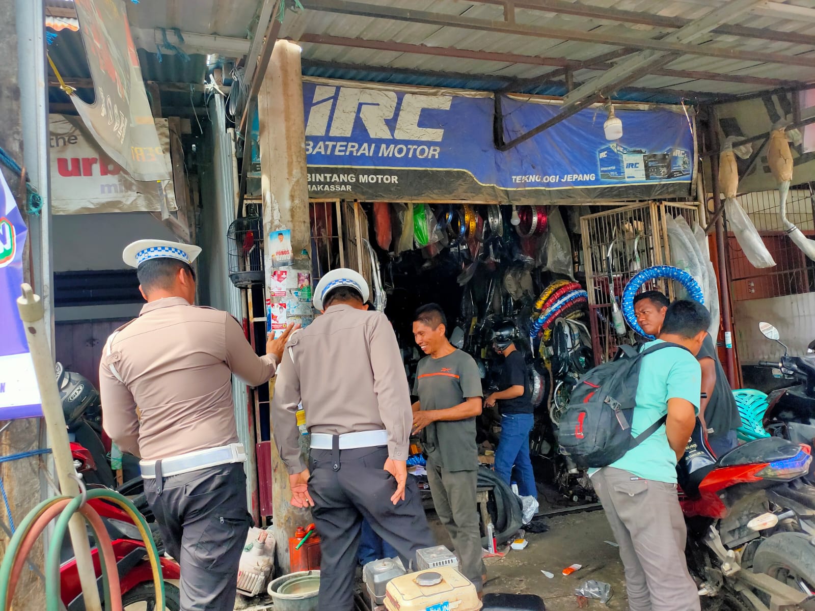 Terpantau, Personil Sat Lantas Polres Luwu memberikan arahan dan penekanan kepada pemilik dan karyawan yang sementara beraktifitas di bengkel.