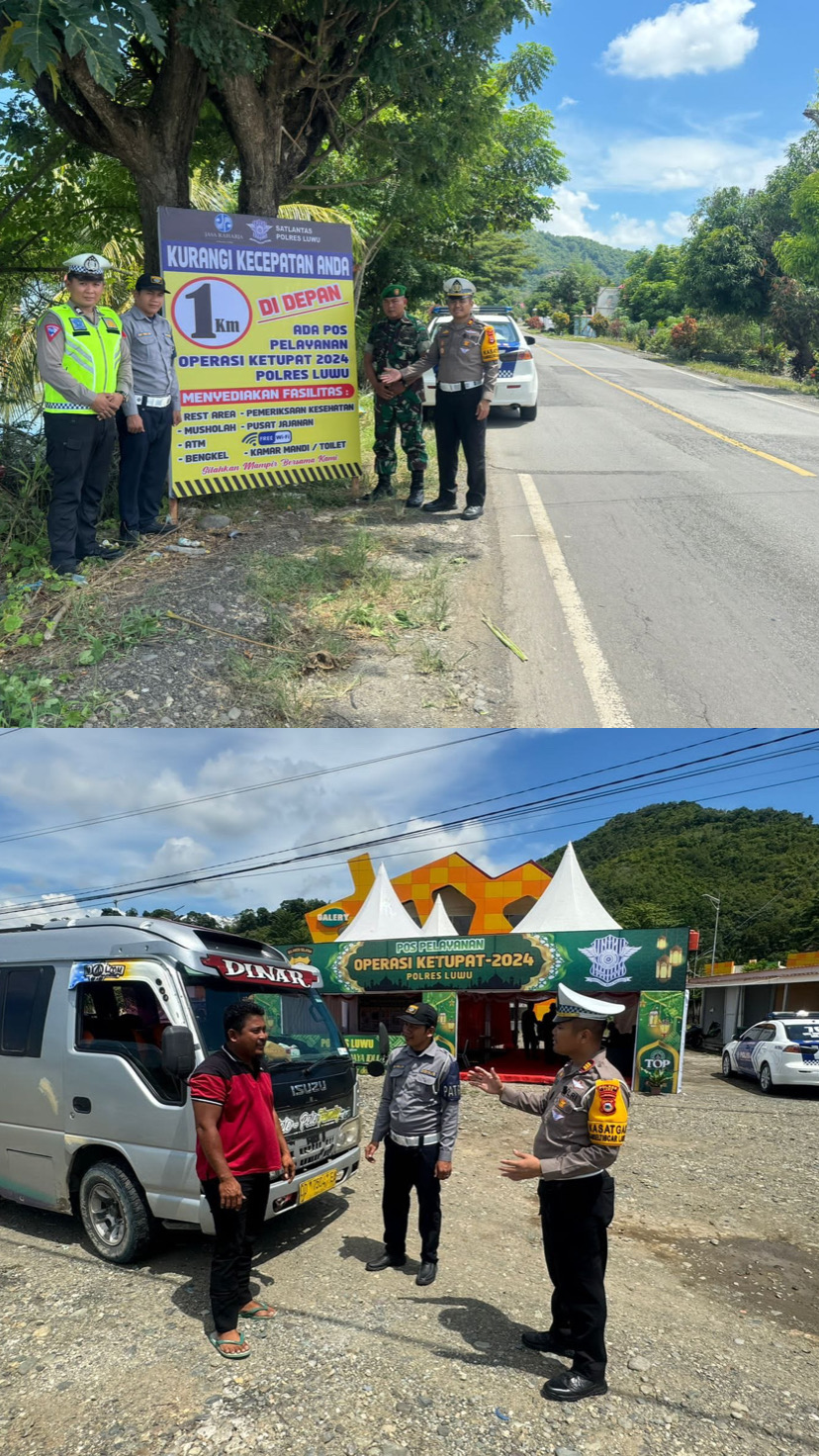 Tribratanewsluwu.co.id Luwu – Operasi Ketupat dalam rangka pengamanan mudik dan hari raya idul fitri 1445 H, telah berjalan. Satuan Lalu Lintas Polres Luwu laksanakan Pembinaan dan Penyuluhan kepada para pengendara kendaraan bermotor serta memasang spanduk himbauan serta petunjuk lokasi Pos Pelayanan dan Pengamanan. Jumat (5/4/24).