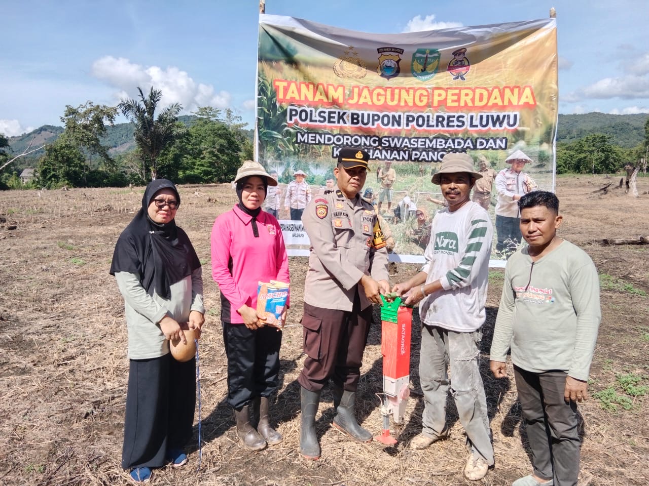 Tribratanewsluwu.co.id Luwu – Dalam rangka mendukung program ketahanan pangan, Polsek Bupon menggelar kegiatan penanaman bibit jagung di lahan seluas 1 hektar yang berlokasi di Dusun Padang Redo, Desa Tanjong, Kecamatan Bupon, Kabupaten Luwu. Sabtu (11/01/2025).