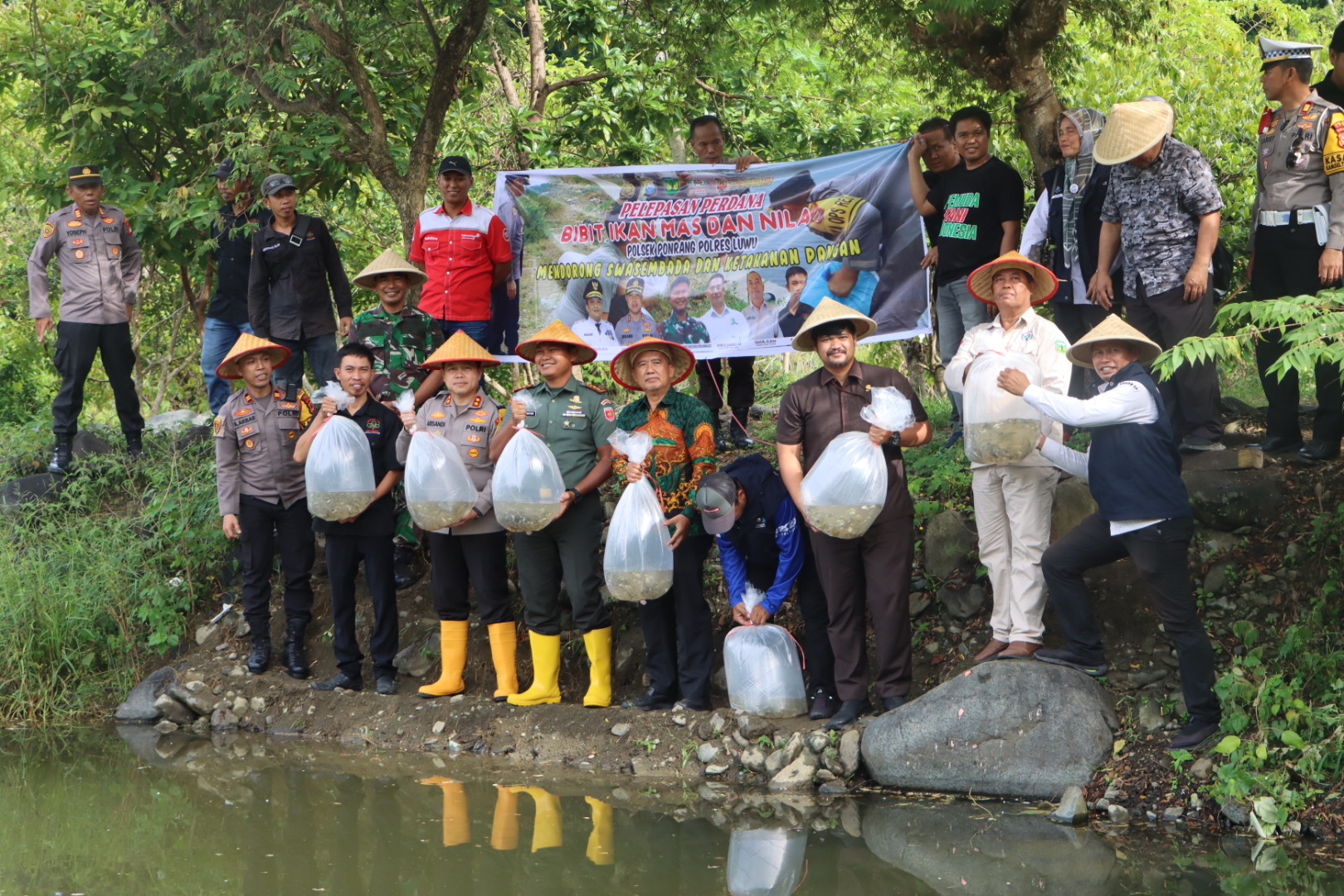 Kegiatan ini dihadiri oleh Dandim 1403/Sawerigading Palopo Letkol Arm Kabit Bintoro Priyambodo, S.IP., Bupati Luwu yang diwakili oleh Kadis Perikanan Ir. Baharuddin, Anggota DPRD Kabupaten Luwu Andi Muh. Arfan Basmin, Camat Ponrang Musta, S.E., Kapolsek Ponrang Iptu A. Akbar, S.H., M.H., Ketua DPC Pemuda Tani Indonesia Kabupaten Luwu Akrama Harnong, S.Pi., serta para PJU Polres Luwu dan masyarakat Desa Tampa.